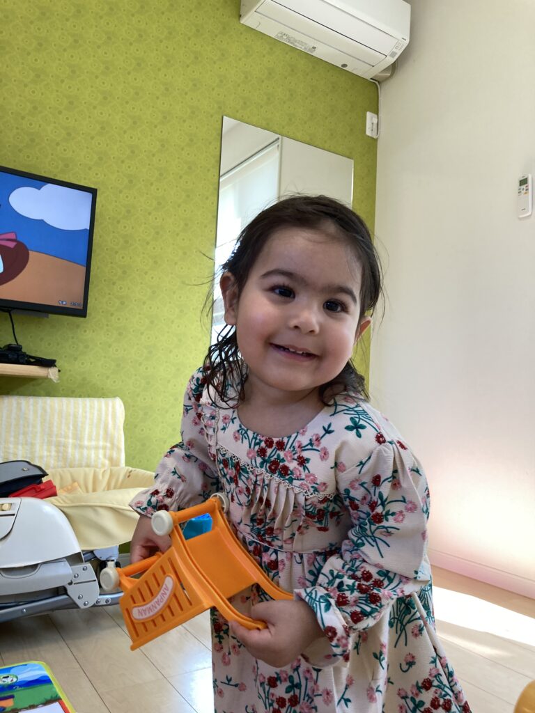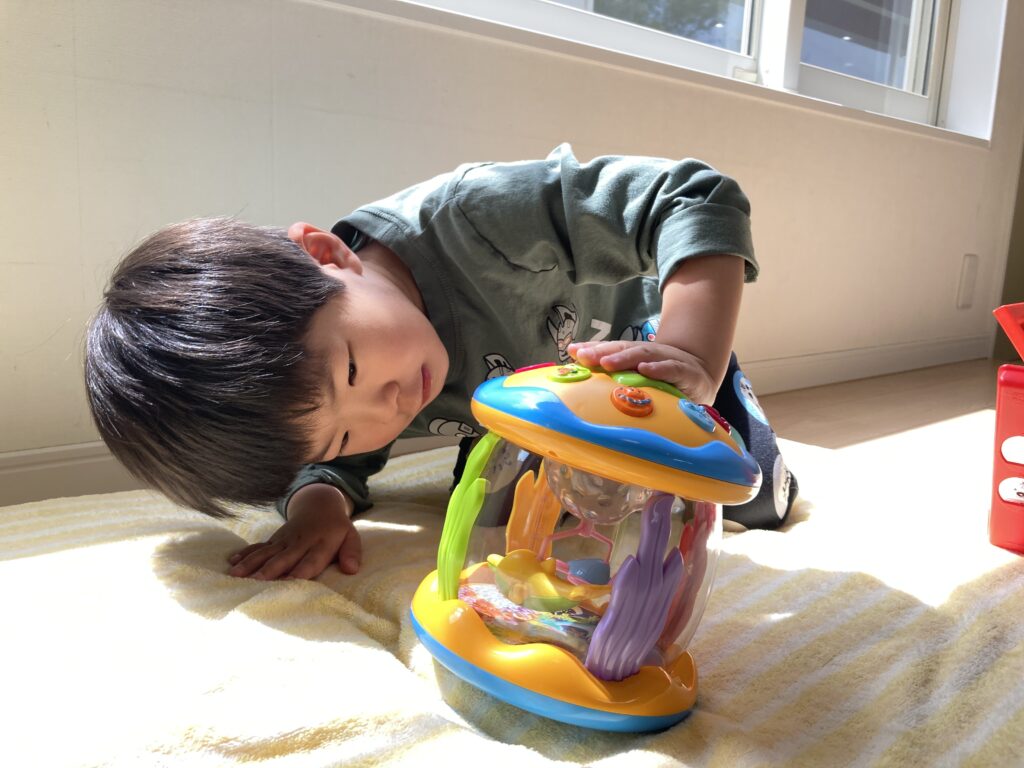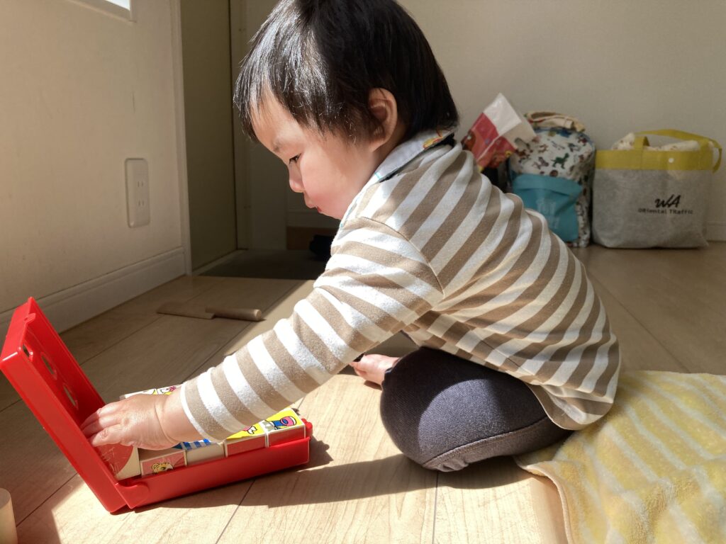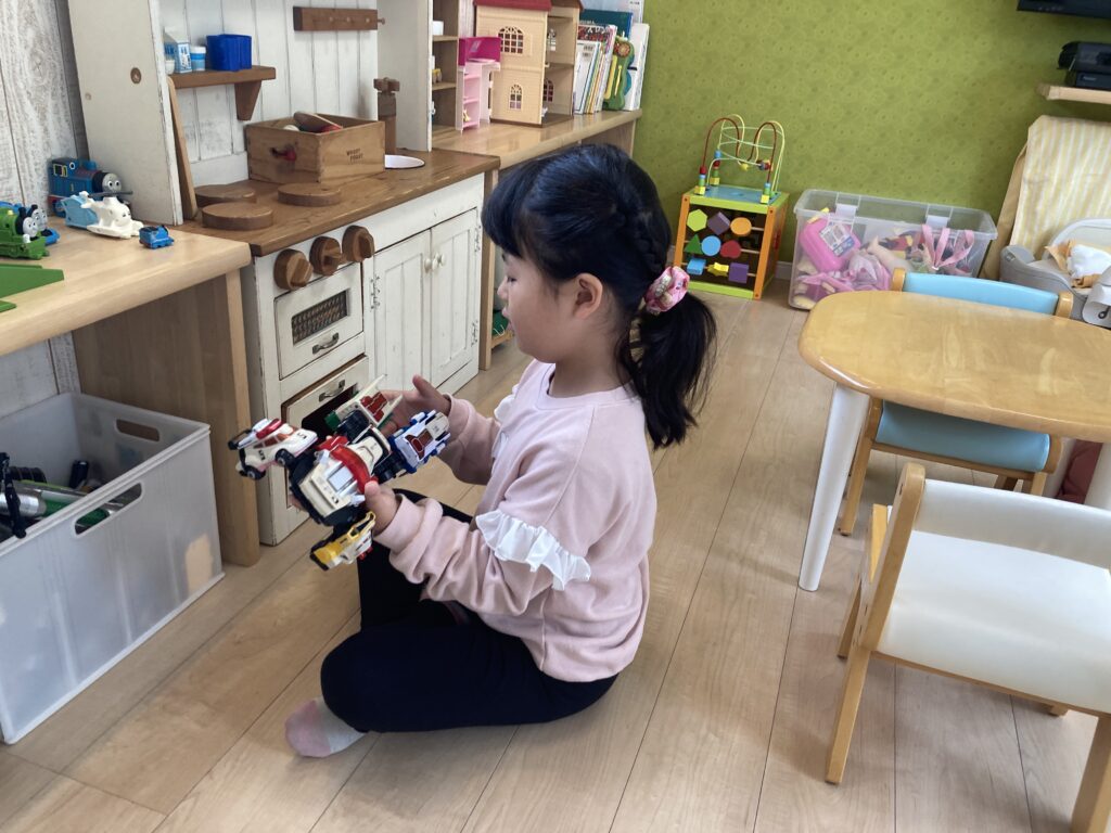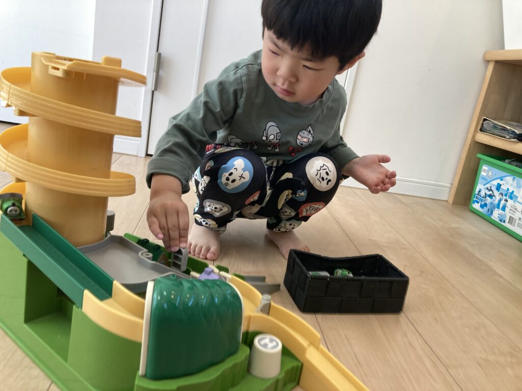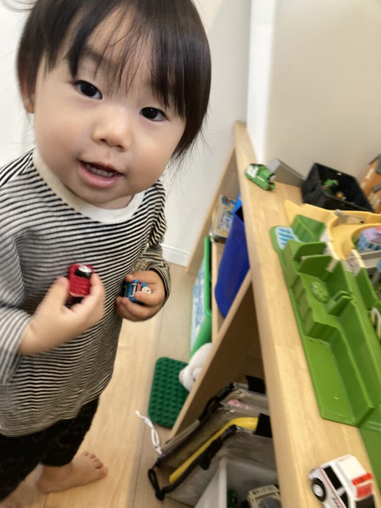 でもすぐに泣き止んで、トミカで遊び始めました♪