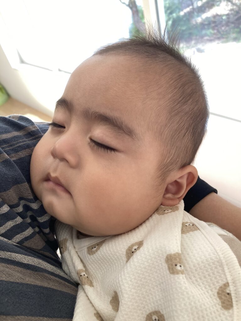 今では、靴を揃えて入室してくれたり、美容室のお母様を見つけて笑顔で手を振ったり…とてもお兄さんになりました!でも、バンボに座るのは小さな頃からの恒例でして…面白いですね