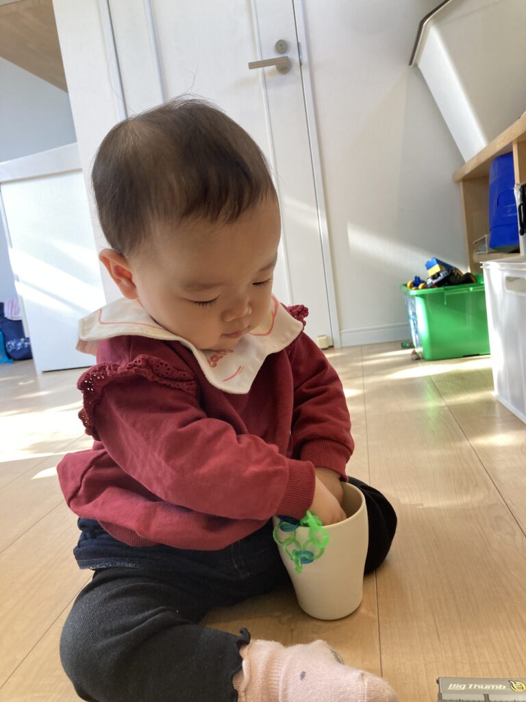 特におままごとが楽しかったみたいで、野菜を切ったり鍋をかき混ぜてみたり「かんぱーい!」して遊んでいました