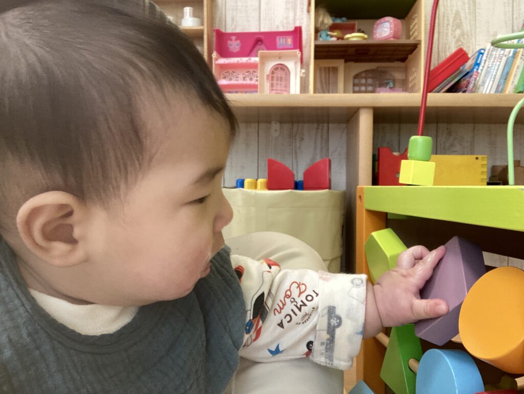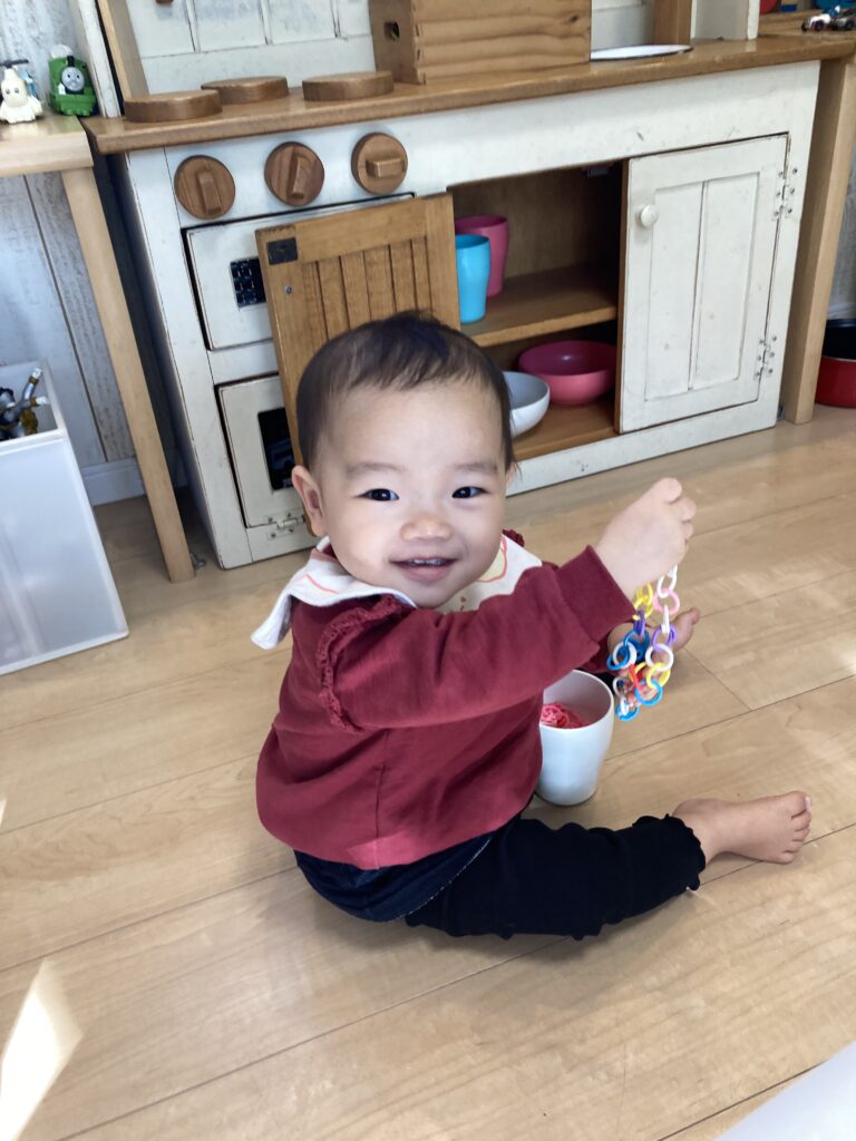 入室時は一度泣けたのですが、すぐに落ち着いて遊び始めました♪