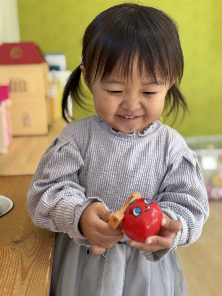 お友達の遊びを見て、隣へ行って可愛い声でおしゃべりしたり、マネして遊んでいました
