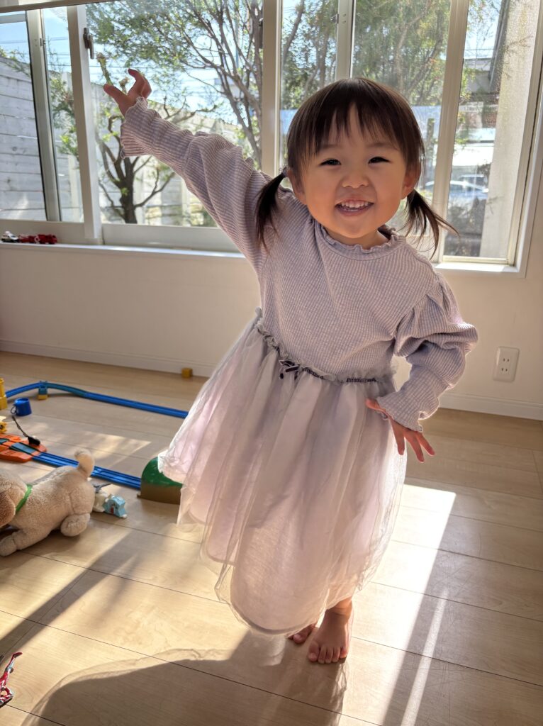 キッチンの戸棚の扉が楽しかったみたいで、開け閉めを繰り返したり、トミカを中にしまってみたり…真剣なお顔で遊んでいました