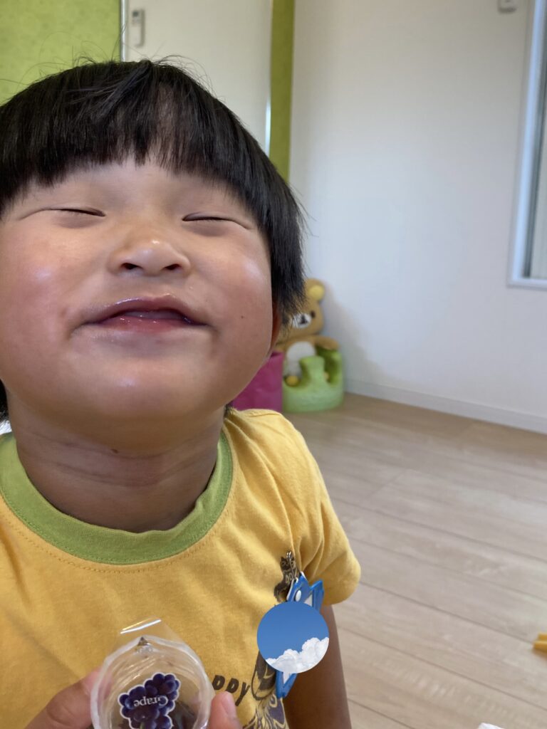 おやつのゼリーが嬉しくて、美味しいを表現したお顔を見せてくれました!