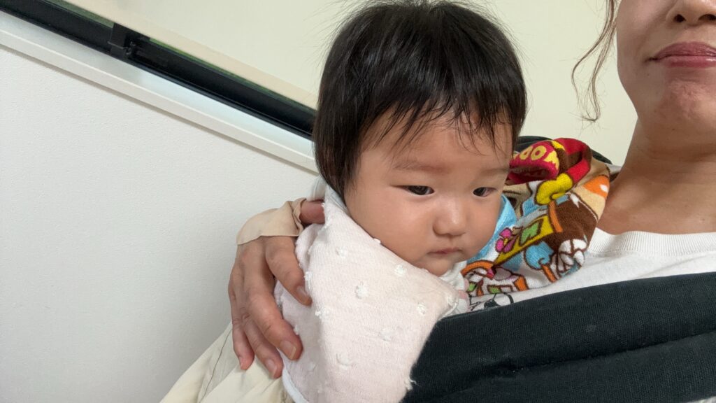 お家の方から眠くなったりグズついた時にはふわふわタオルがいいですとお伺いしていたので渡すとすぐに泣き止みました