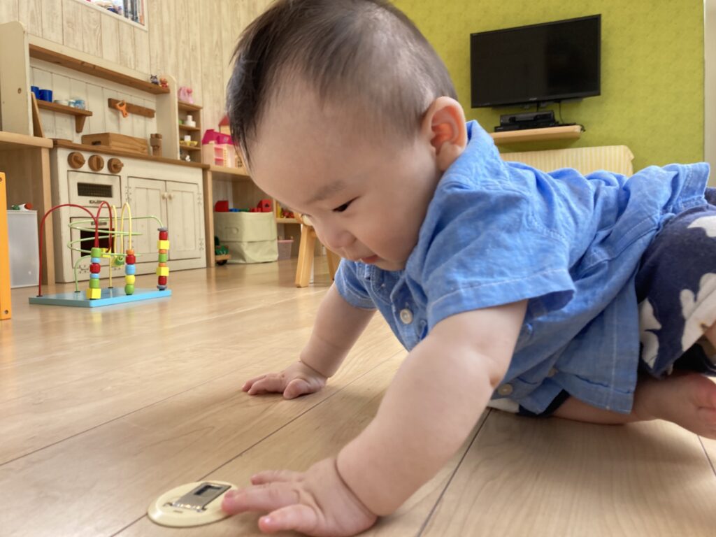 不安そうなお顔でしたが、ドアストッパーに引き寄せられるように、ハイハイで入室しました