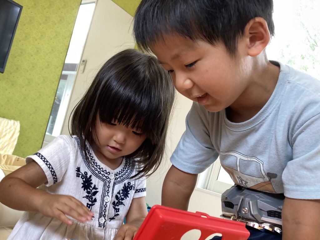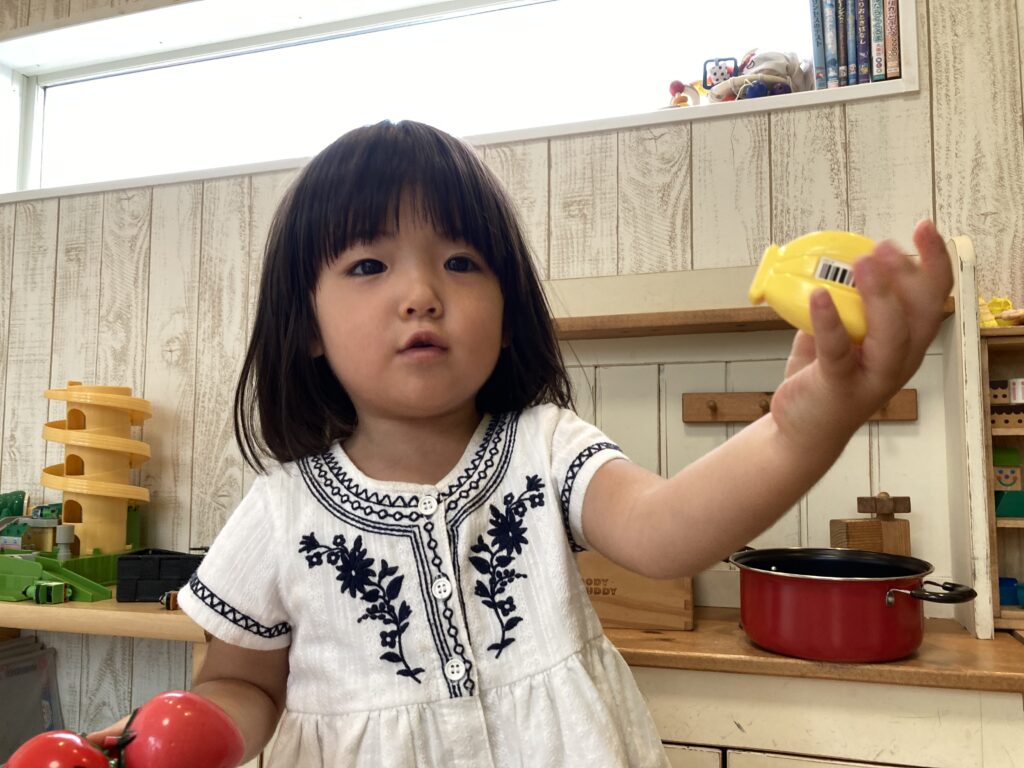 元気に入室して、すぐにおままごとやトミカで遊び始めました♪