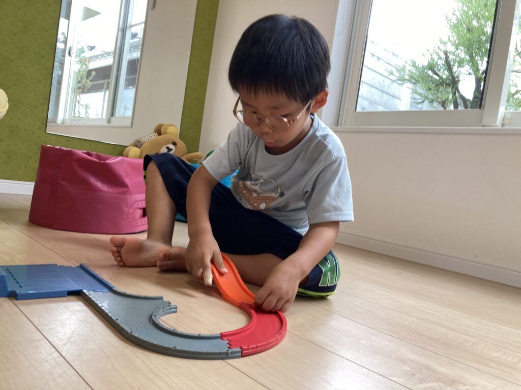 4歳さん、お友達がいたので、ルートをつなげて一緒にトミカで遊んでいました♪