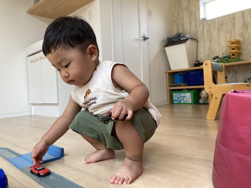 トミカが大好き!そっと手を添えて走らせては、ご満悦にパチパチ拍手^_^ 楽しそうでした♪