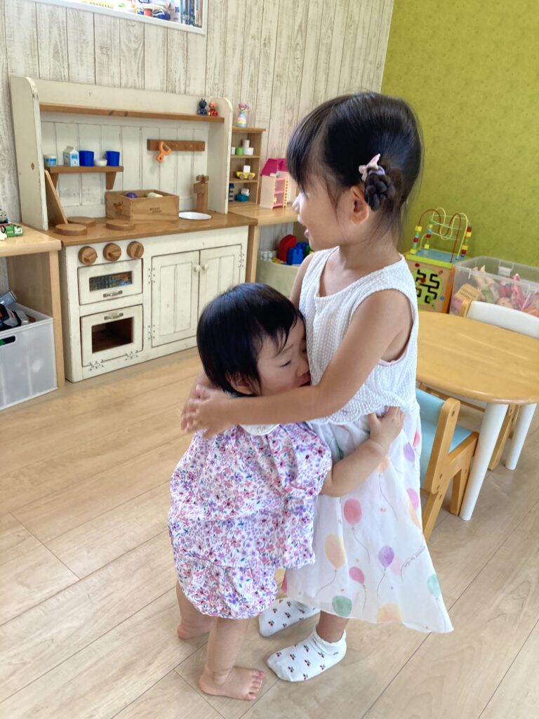 1歳さん、お母様と離れるのがつらくて、お姉ちゃんにしがみついて泣けました…お姉ちゃんの優しい対応に、少しずつ落ち着いていきました