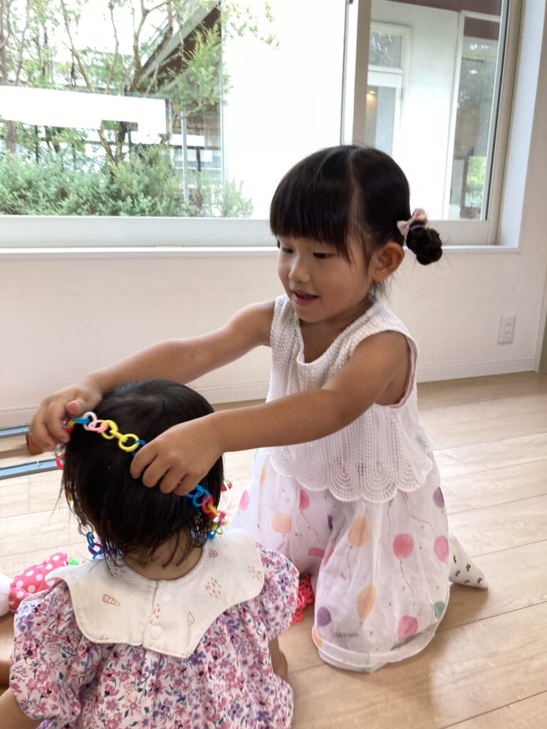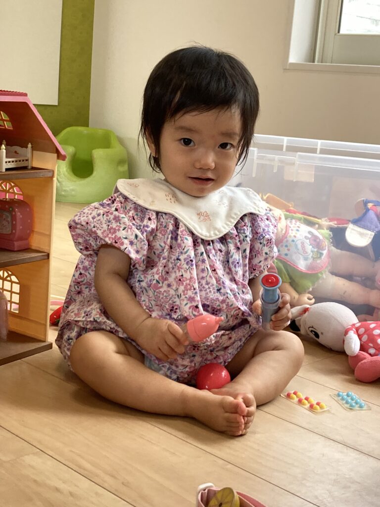 すっかり落ち着いたあとは、お姉ちゃんのおままごとやお医者さんごっこに、参加していました♪