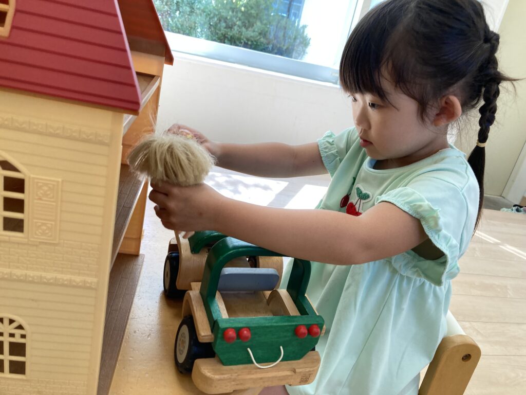 4歳さん、楽しみにoazoに来てくださったそうで、自分で靴や靴下を進んで脱いで、すぐに遊び始めました♪