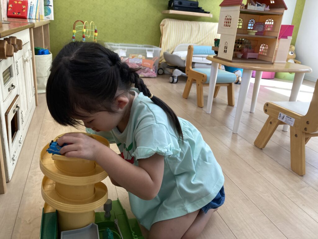 お母様が「家にはないからかな」とお話しされていましたが、トーマスでとても熱心に遊んでいました