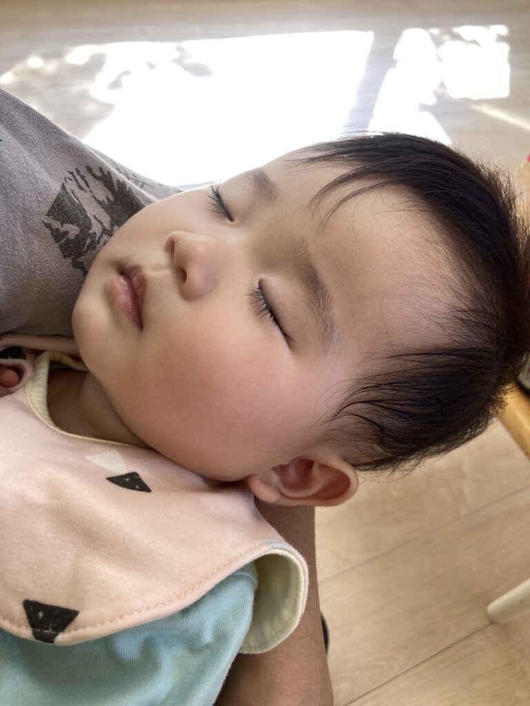 午前中にあまり寝なかったそうで、すぐに眠たそうな様子になり…お昼寝タイムになりました