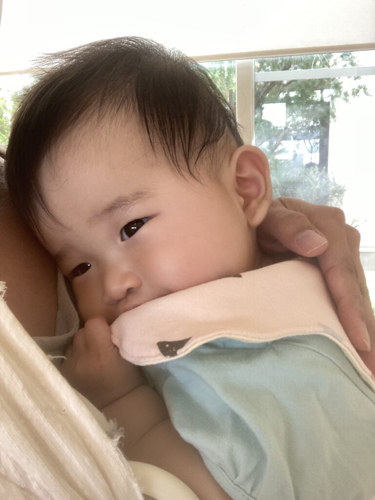 8ヶ月さん、人見知りの時期とのことで、泣いて入室しました