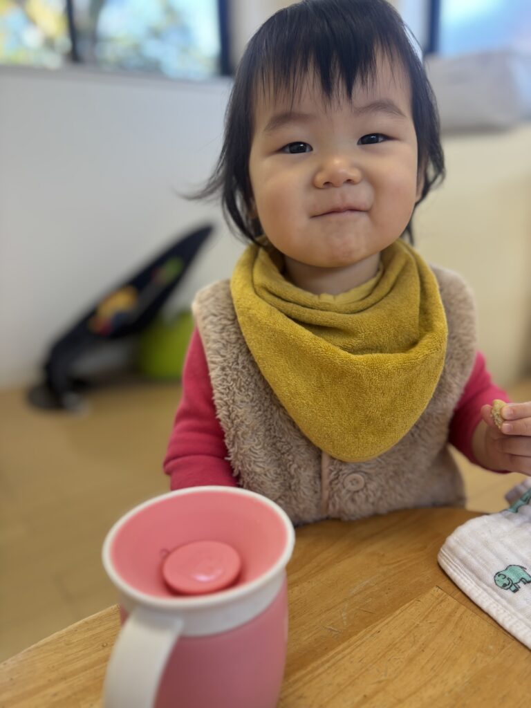 離乳食も完食し、ご機嫌さん♡