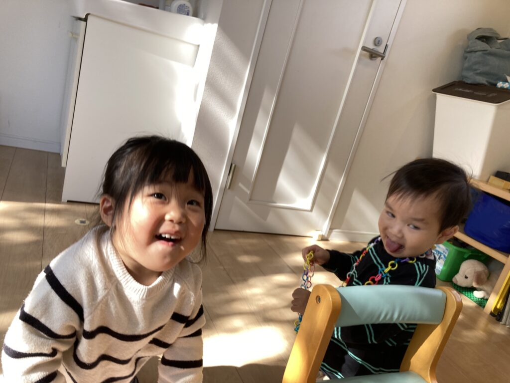 こちらのお二人、最初は違う遊びをしていたのですが、だんだん仲良くなって…終盤には、お二人でキャハキャハ声をあげて、遊んでいました^_^