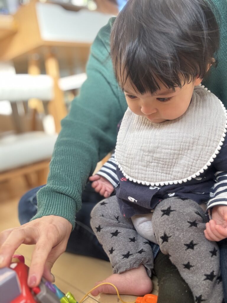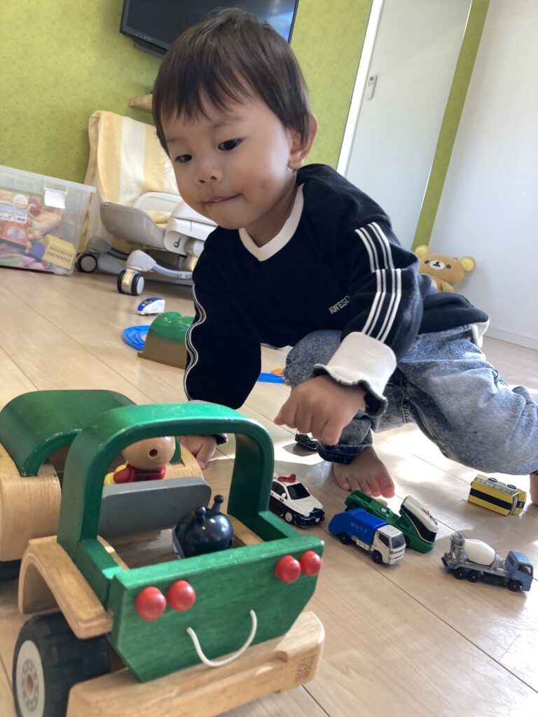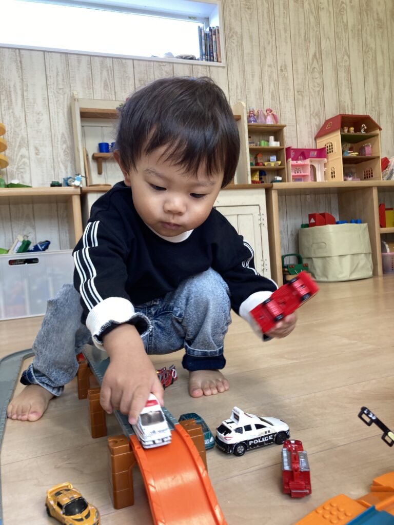 乗り物がお好きな様子で、いろいろなおもちゃに「アレも楽しそう!」「コレもいいなぁー」という感じで、好奇心にあふれていました♪