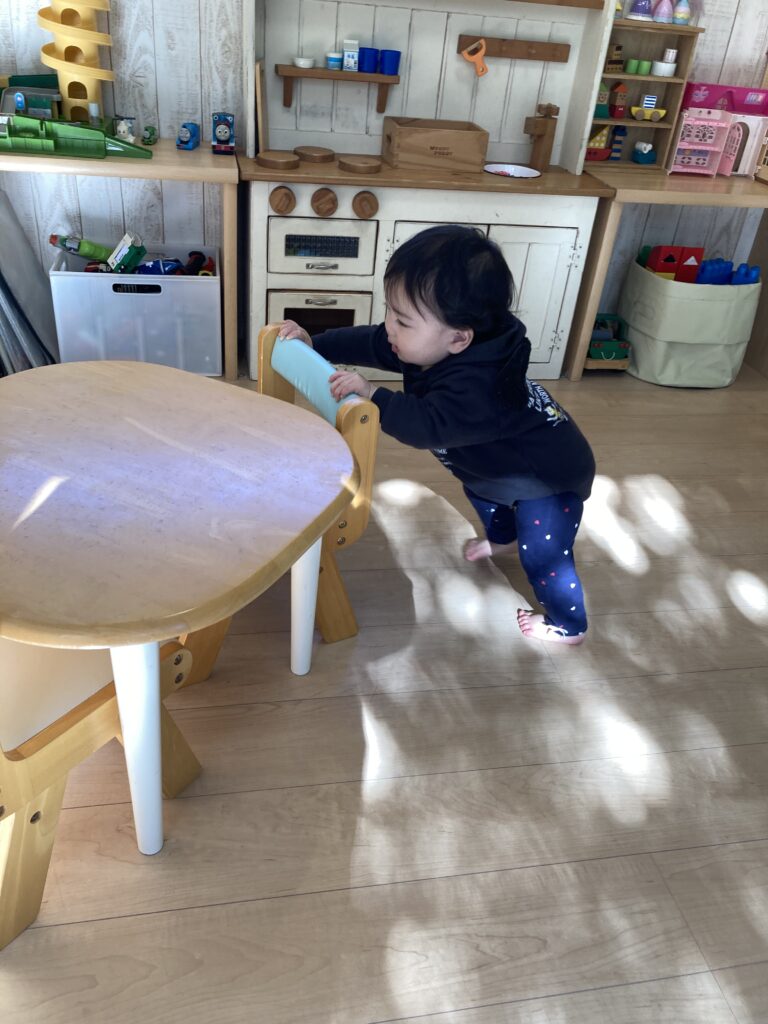 つかまり立ちをして、それから慎重に伝い歩き…ゆっくり私のところへ伝い歩きで近付いてきてくれるのが、可愛すぎました♡