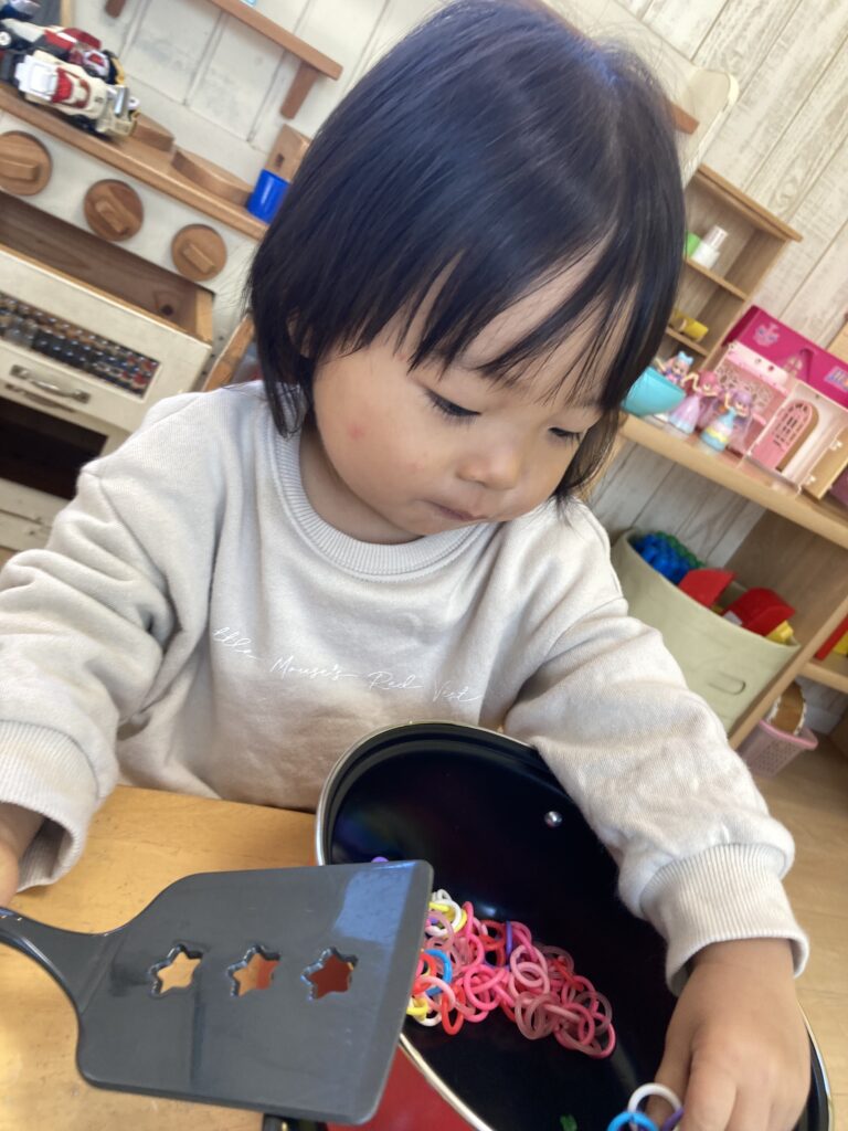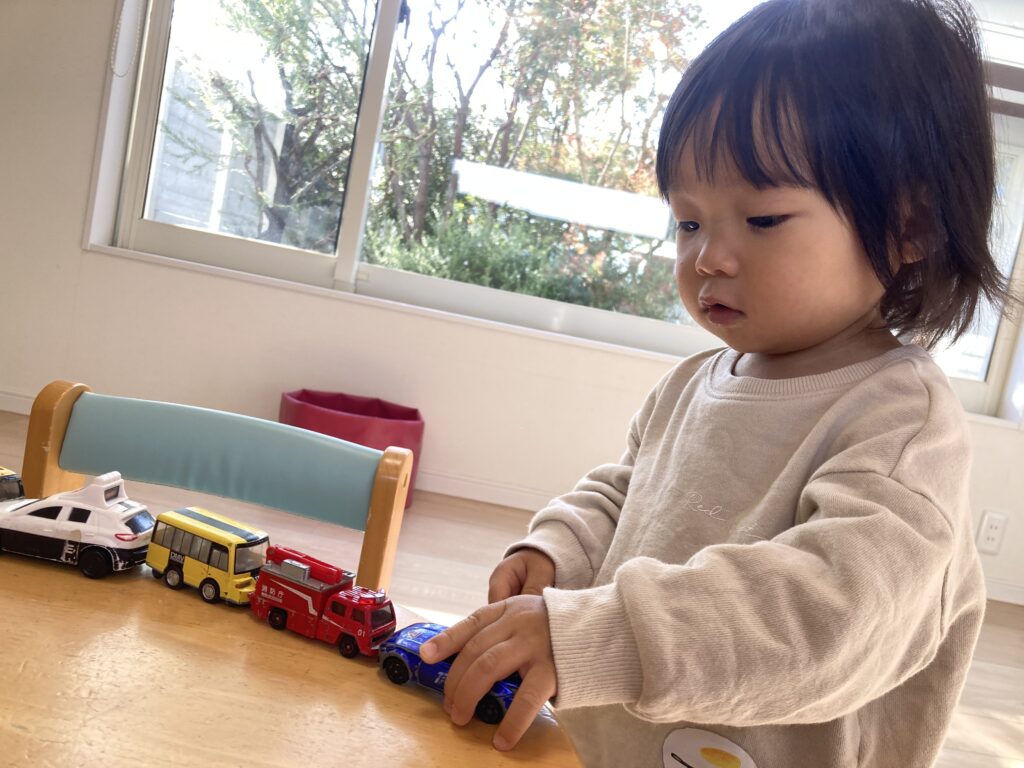 トミカを丁寧に並べたり、恐竜を手に鳴き真似をしたり、おままごとで調理を楽しんだり…ランチタイムもパクパク完食して、お迎えまで元気いっぱい過ごしていました!