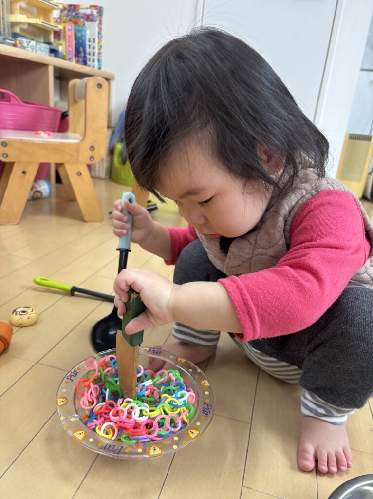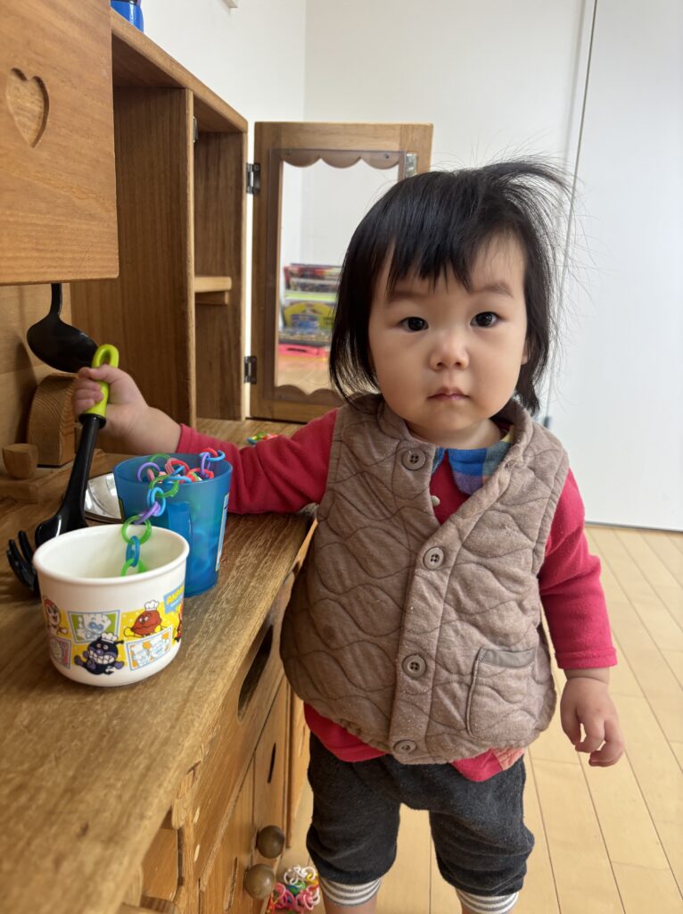「ごはんをつくるの」と話しながら、忙しそうに調理していました!「はいっ」と、私にも分けてくれましたよ