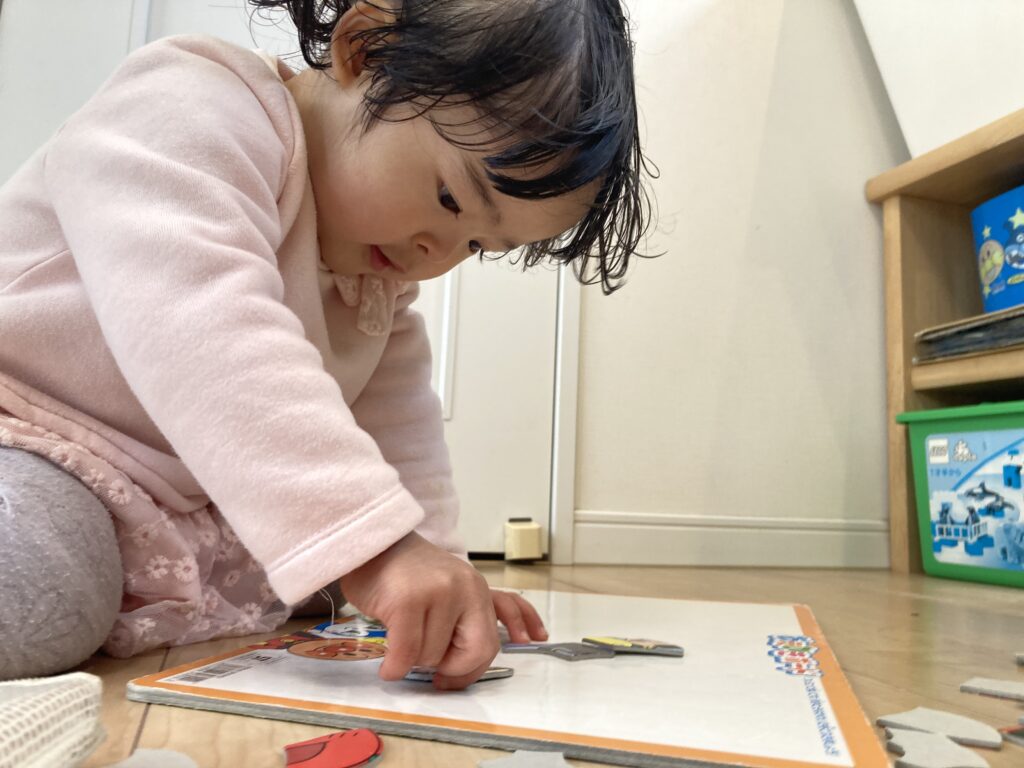 あちらこちらで元気いっぱい遊んでいました♪ アンパンマンのテーマ曲を口ずさみながら、パズルにチャレンジしていました