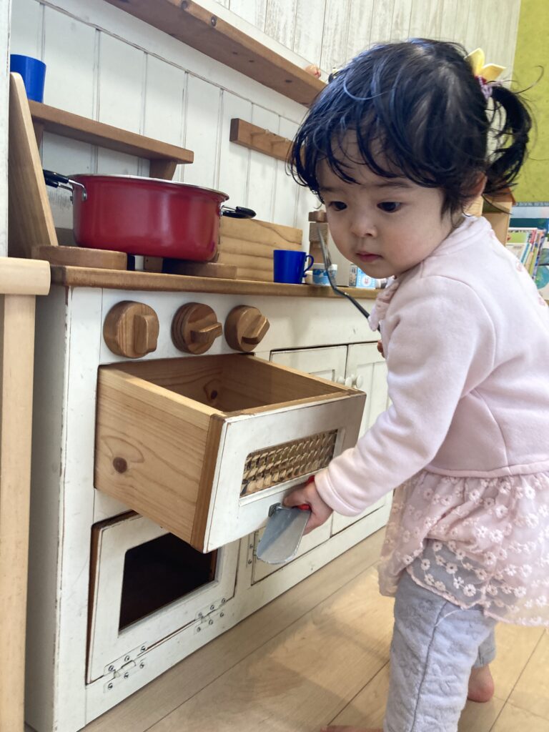 ぽぽちゃんとレゴをやりたくて、おもちゃを自分で思う場所に運んでは、セッティングしていました