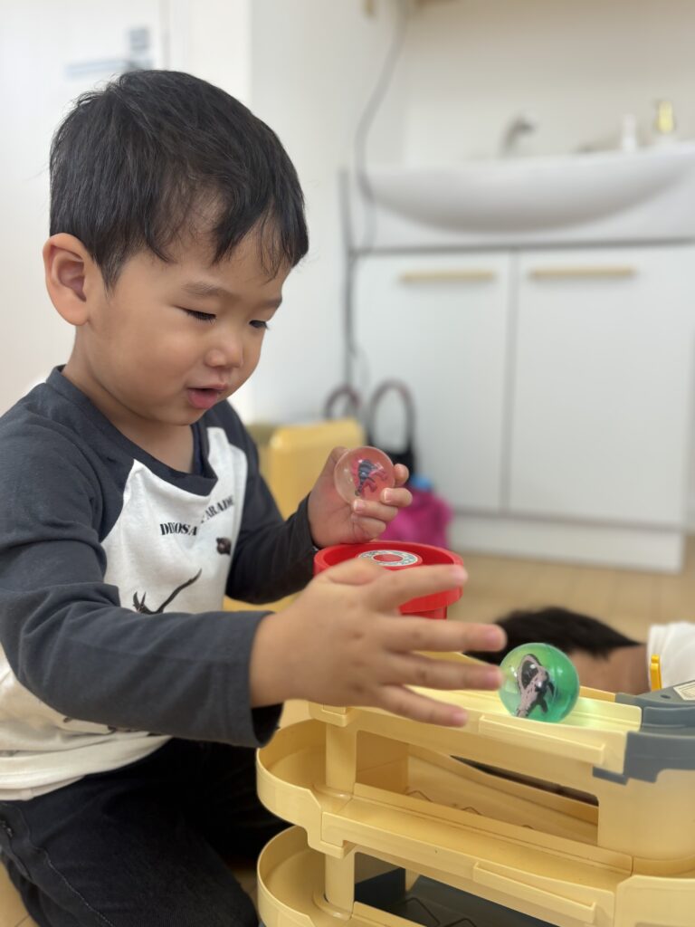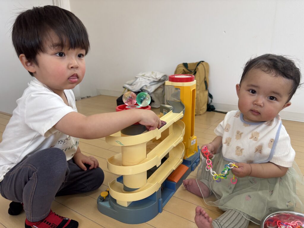 入室してから、少し泣けましたが、4歳さんが「ばぁ!」してくれて、すぐに落ち着いていきました