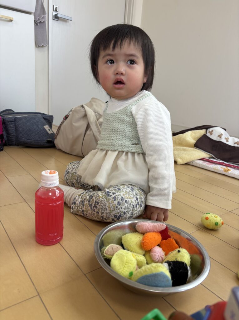 慣れてくると、にこにこ笑顔も見せてくれました♡お昼寝した頃にお母様がお迎えに来てくださいました