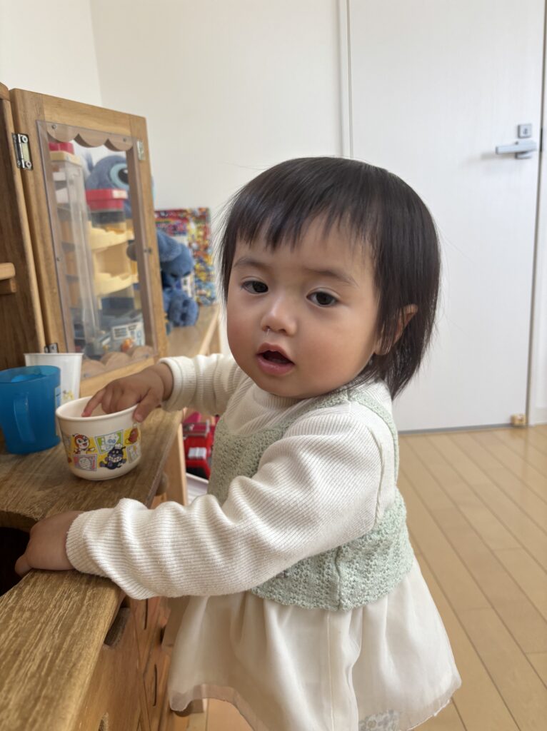 食べ終わったら「あー!」と元気な声をあげて、あちらこちらへ移動しては、遊んでいました♪