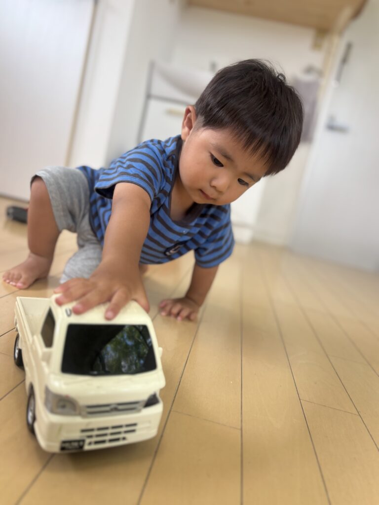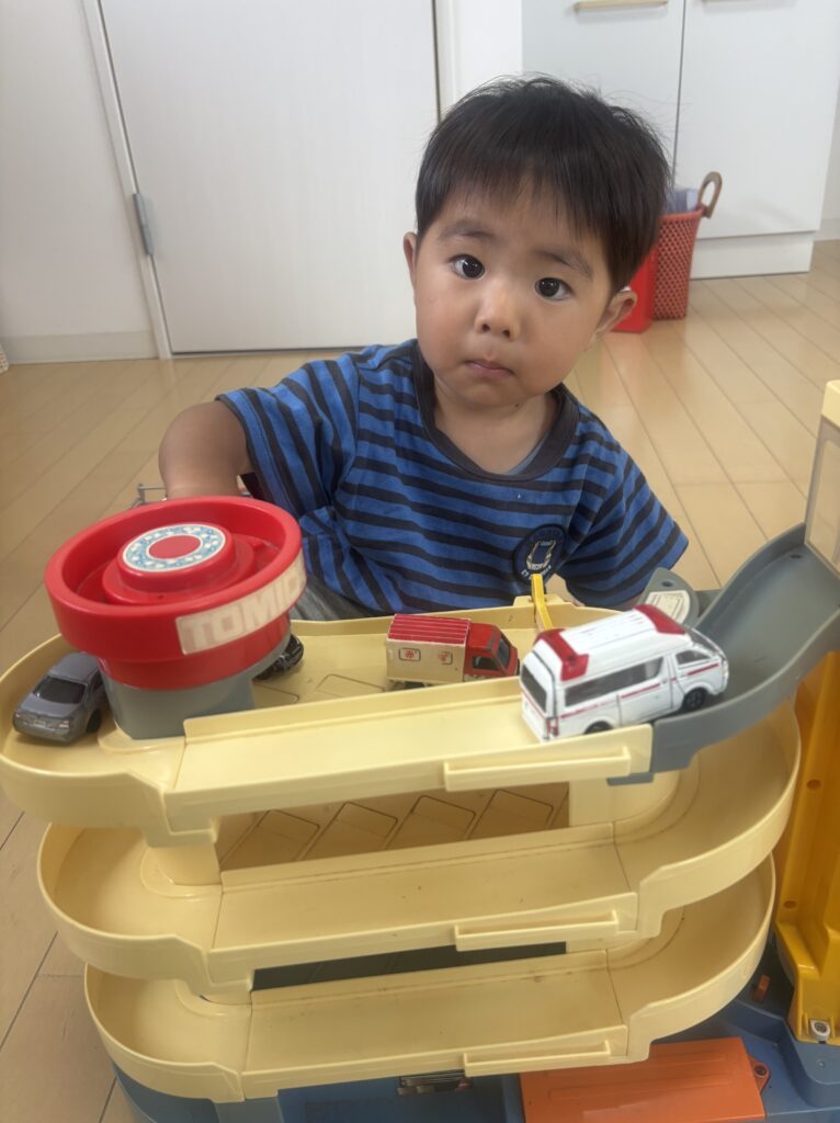 トミカが大好きなので、すぐに遊べるように準備をしておくと入室してすぐ直行!🚗