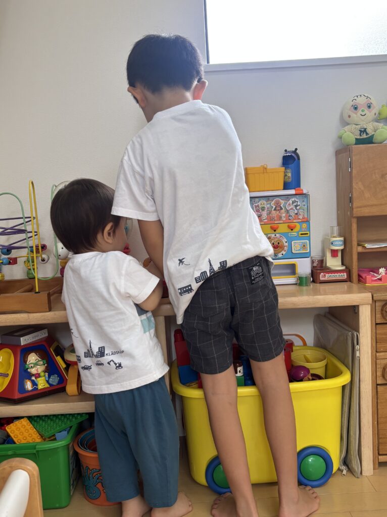 託児の終盤に夢中になっていたのは、レゴブロック。妹ちゃんと一緒に動物を分け合いながら、お2人で黙々とレゴを使って、作っていました