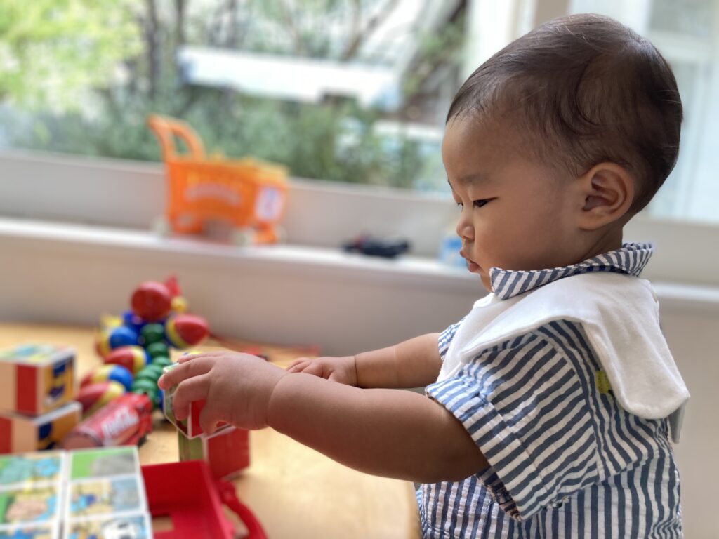 遊び始めたら、大丈夫!「あー!」と声をあげながら、遊んだり、ちょっと得意げに ひとりたっちを見せてくれていました♪