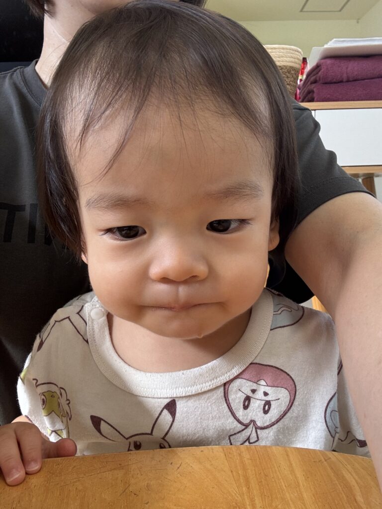 ご飯を少しいただいたら、眠たくなって…ご飯の後は抱っこで過ごして、お昼寝タイムになりました…