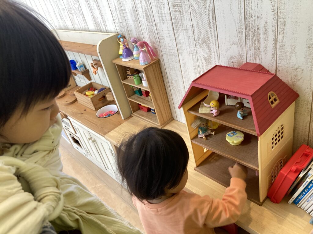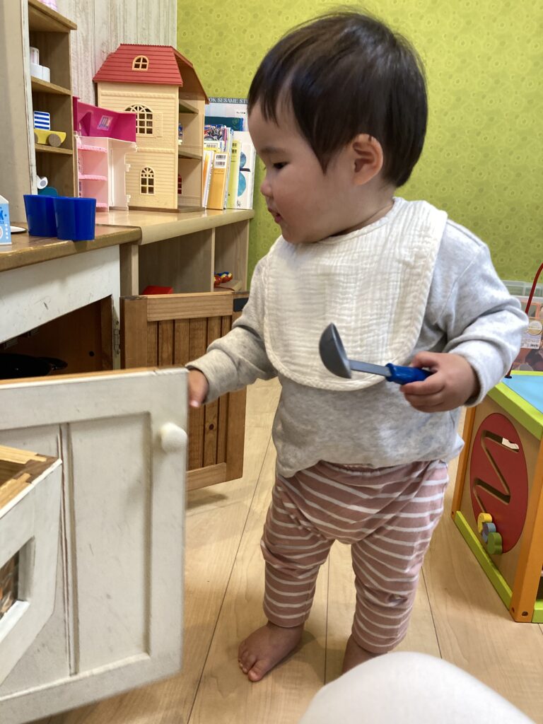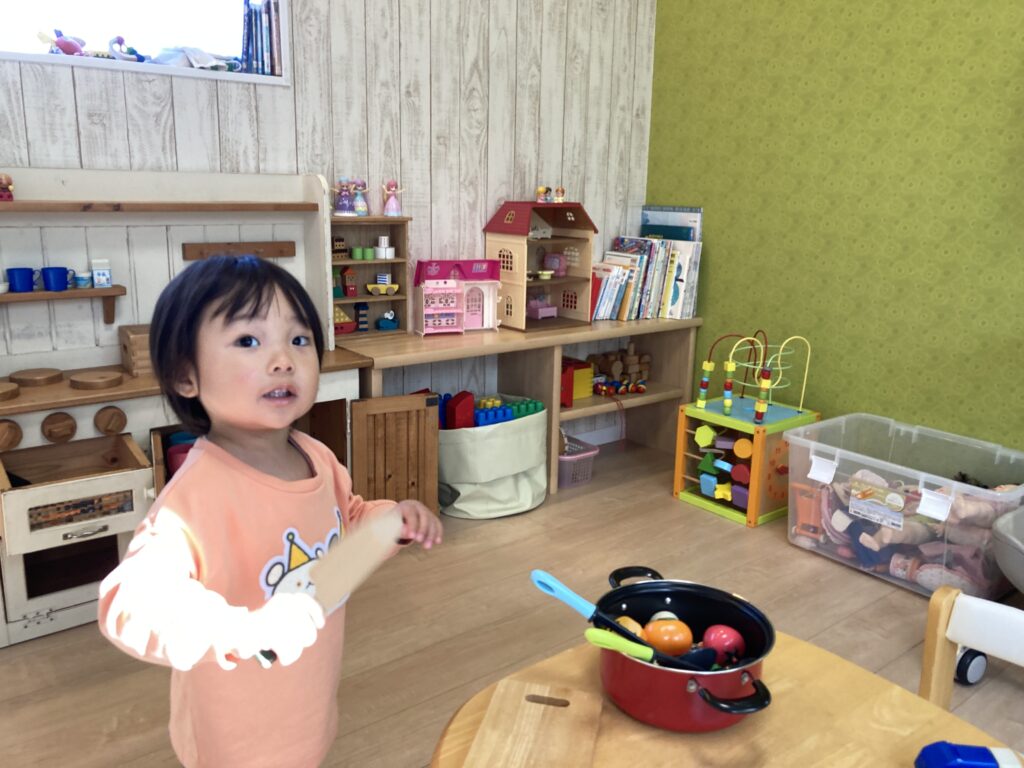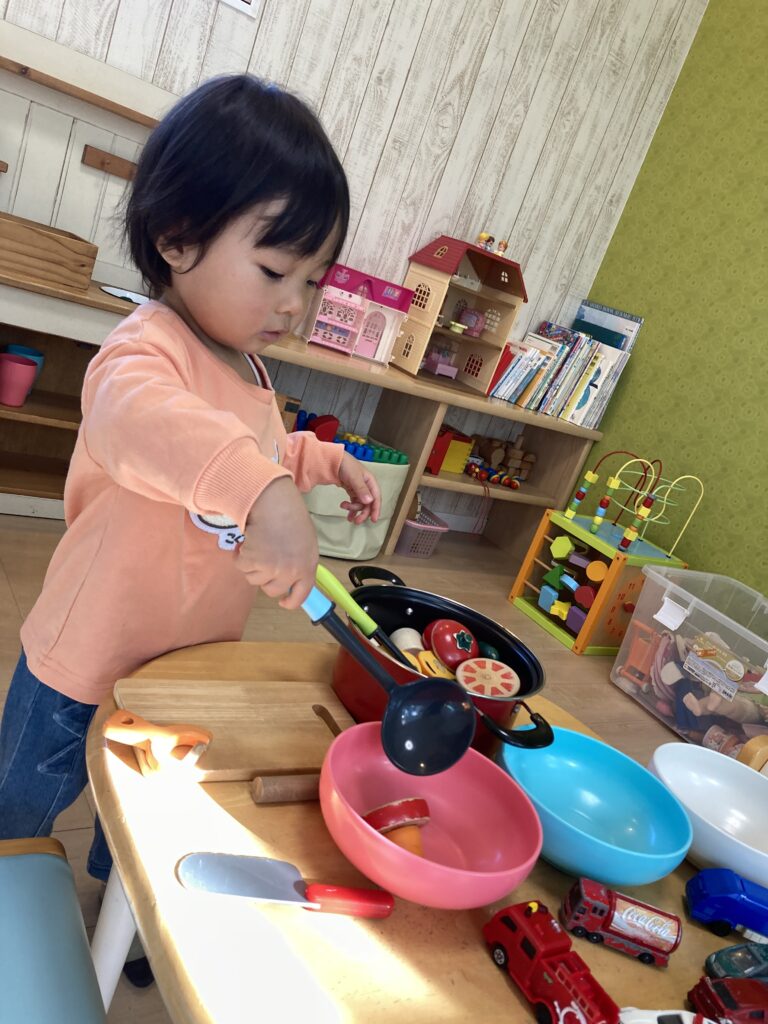 おしゃべりしながら入室して、大好きなおままごとで遊び始めました