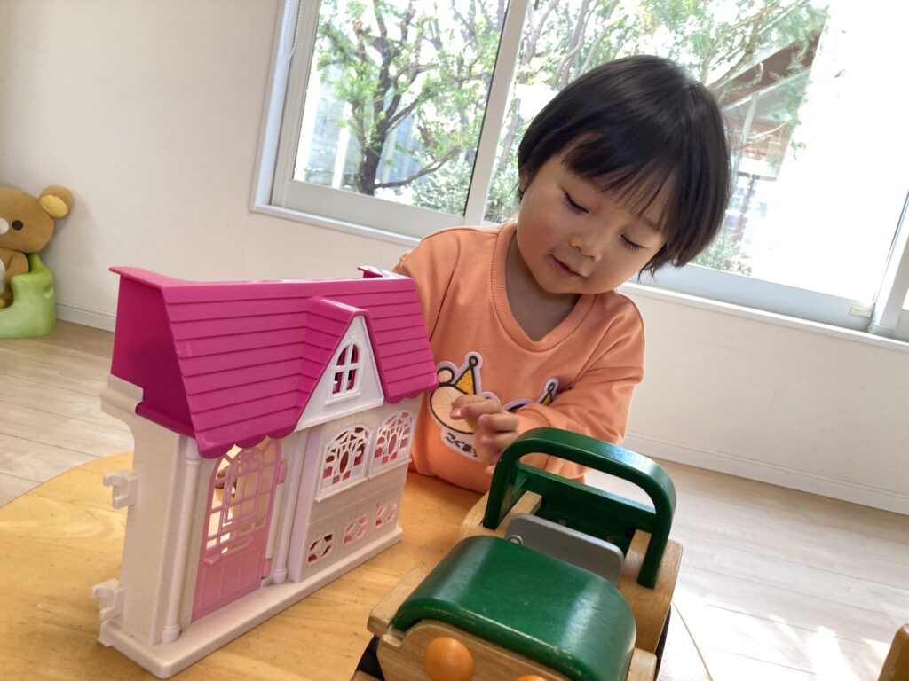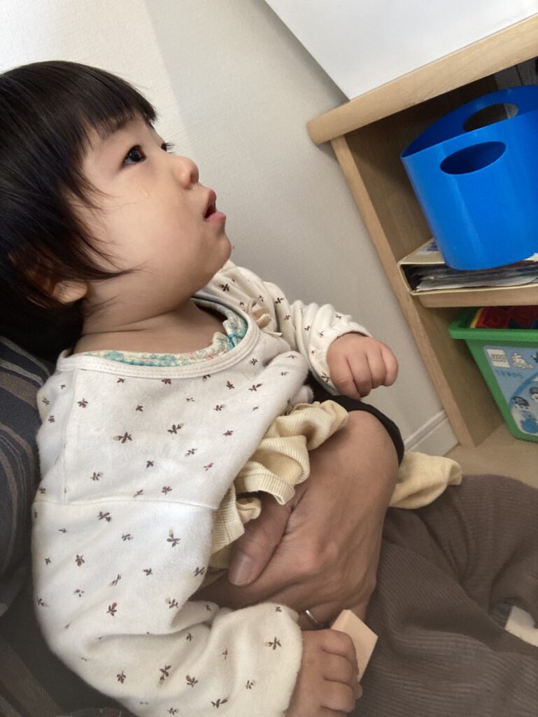 泣いて入室しましたが、すぐに泣き止んで落ち着いていました