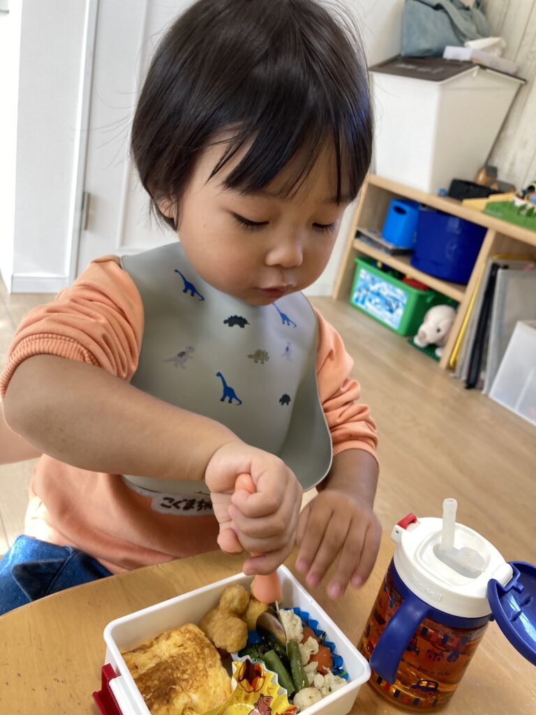 食べる順番にマイルールがあって、自分でやりたい!とやる気に満ちあふれていました〜パクパク上手に食べていました