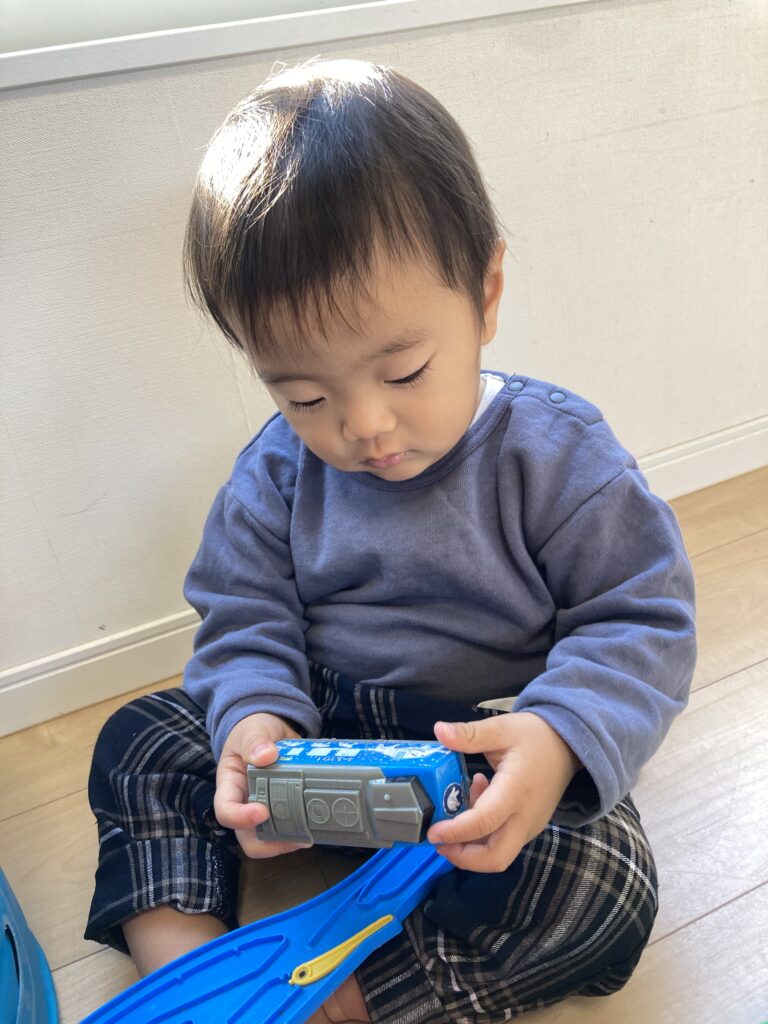 動物がお好きなようで、プラレールの旭山動物園号を、興味津々にじっくり見ていました