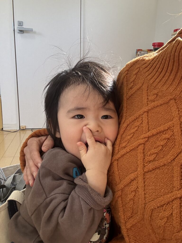 人見知りは大丈夫のようで、抱っこをしてピタッとはりついているのが安心する様子でしたので、ずっと抱っこで過ごしました。
