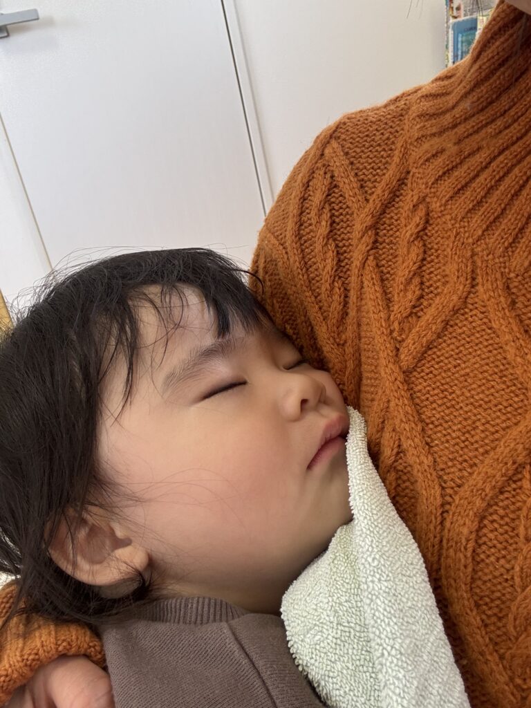 お昼寝の時も安心できるよに抱っこで過ごしました。