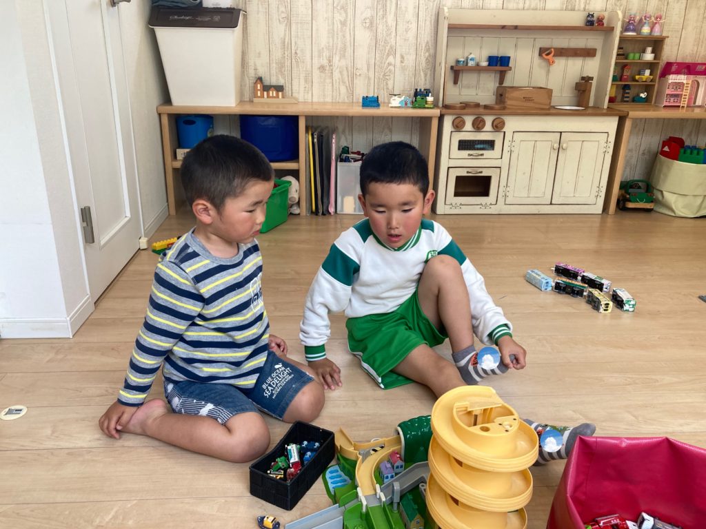 弟くんに「見てて、ほらっ!こうするといいでしょ⁈」と、教えてくれながら、一緒に遊んでいました♪