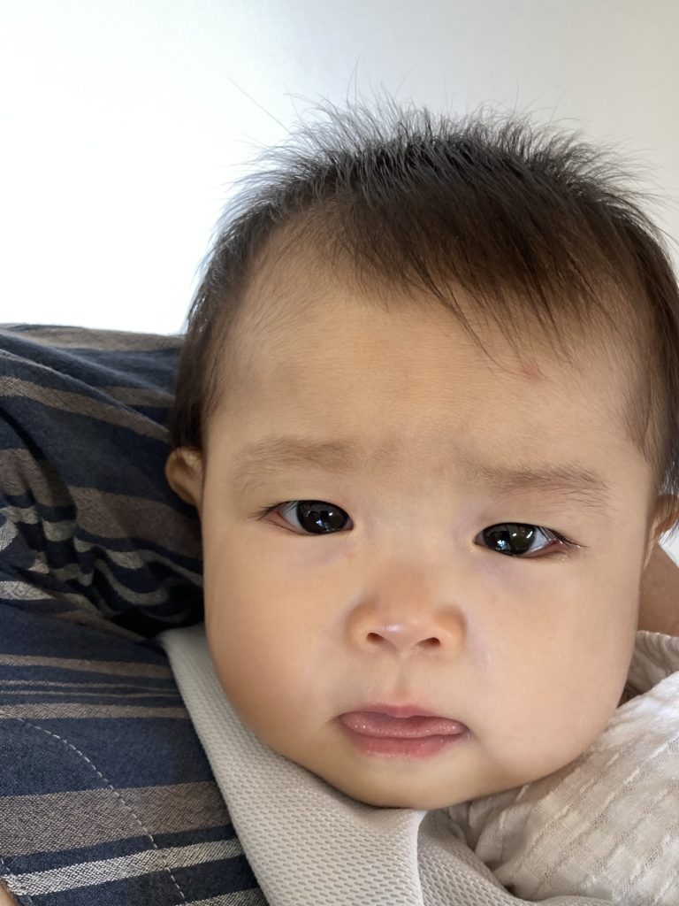 お母様が退室した直後から泣けました。でも、抱っこですぐに落ち着いていきました^_^ おもちゃを手にぎゅっと持ち、まったりと過ごしていました。