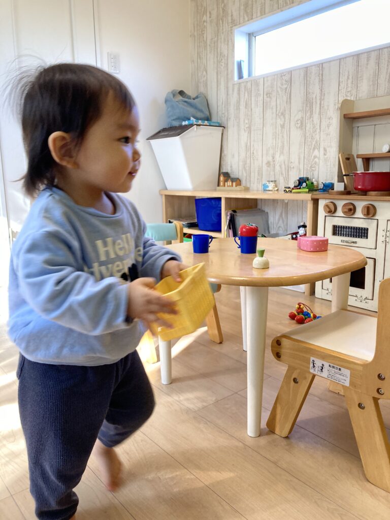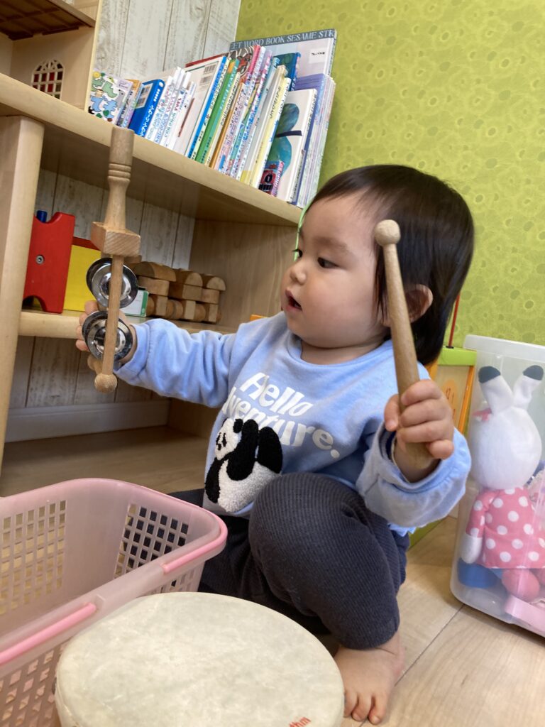 すぐに興味津々に トコトコ入室して、遊び始めました! おままごとを中心に、あちらこちらへ移動して元気いっぱいでした^_^