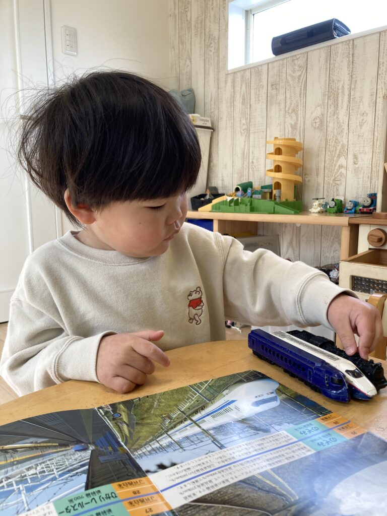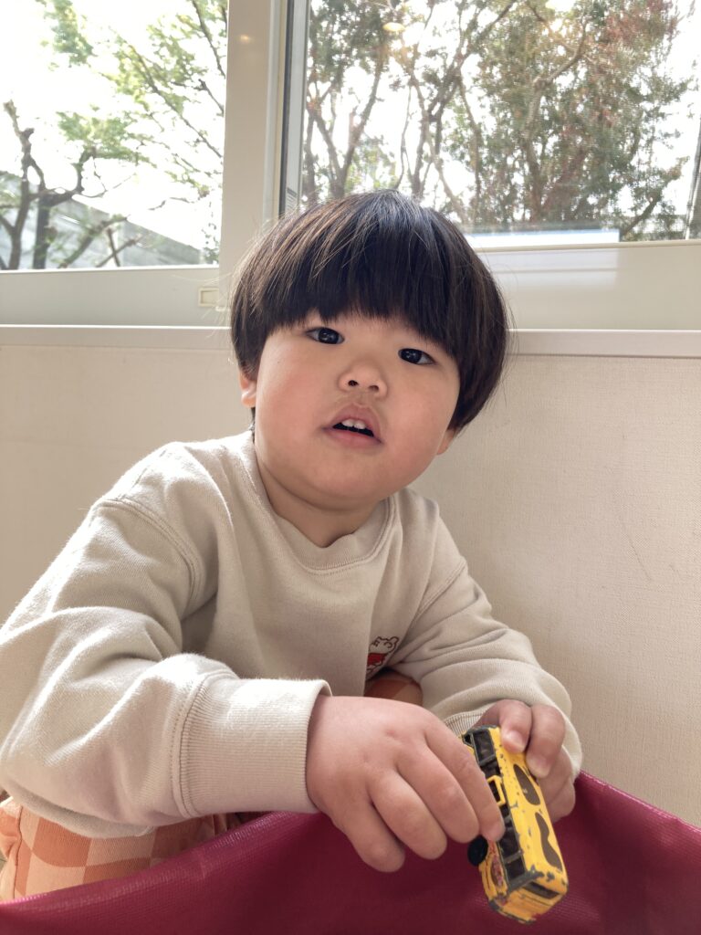 「ブーブ!」と言いながら、トミカに誘われるように入室してくれました