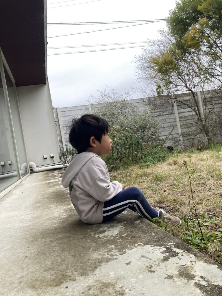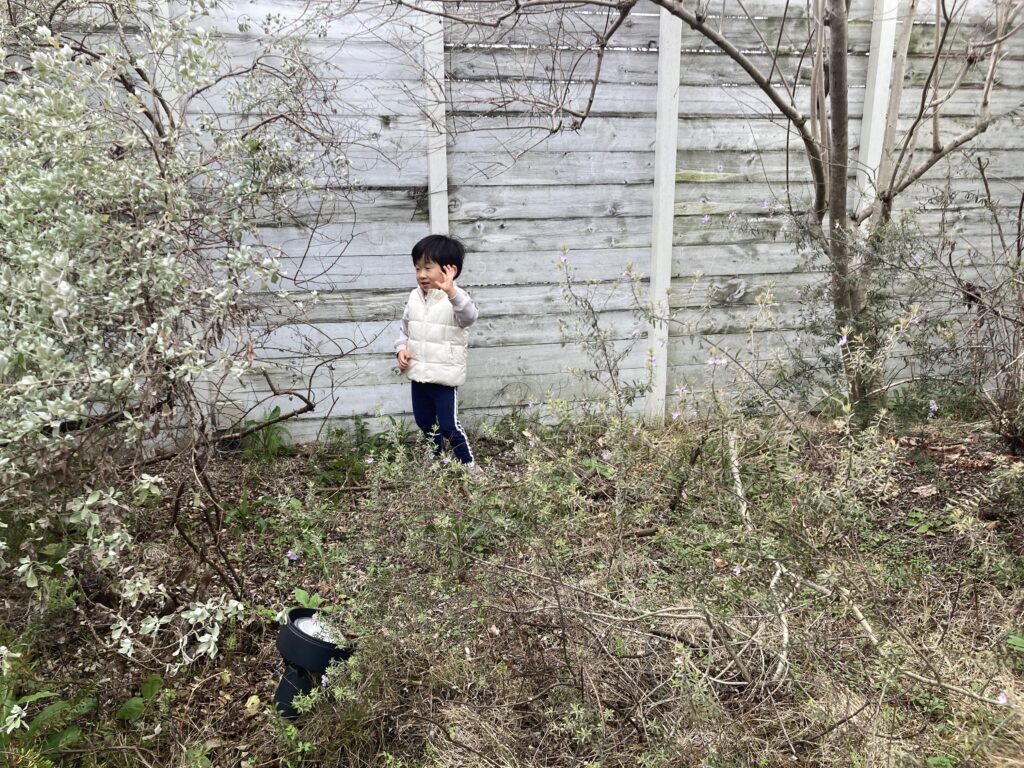 お外では、庭じゅうを探索!奥の方まで行って、私の方に手をふりふりしてくれました