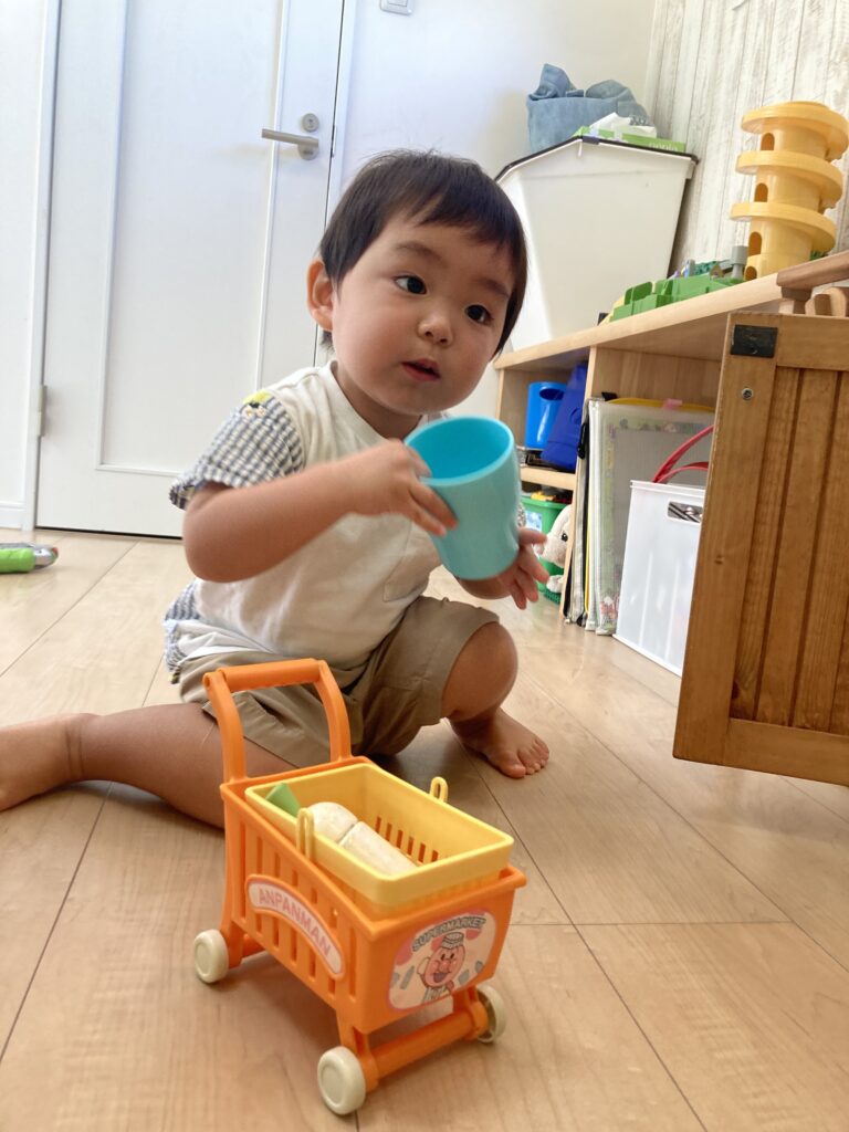戸棚からコップを取り出して遊んでいたので「何が入っているの?」と私が問いかけると、ちょっと考えて…「いちごミルクだよ」とのこと^_^ 聞くだけでも美味しそうです♡