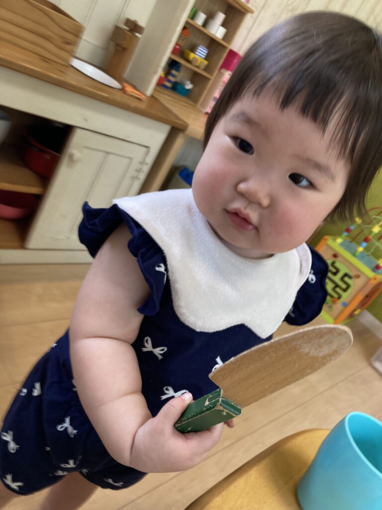 お母様を振り返らずに、かっこよく後ろ手にバイバイして、キッチンへ一直線!そこからじっくりおままごとで遊んでいました