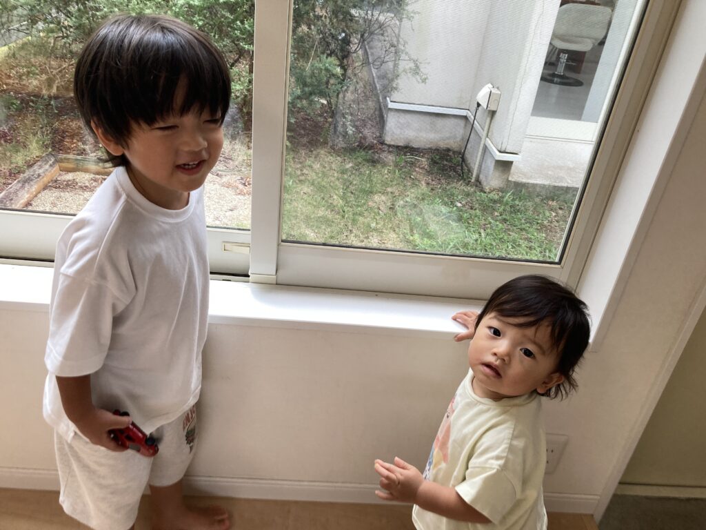 1歳さん、入室した後に窓の近くでしばらく固まっていました…その後少し泣けましたがすぐに落ち着きました