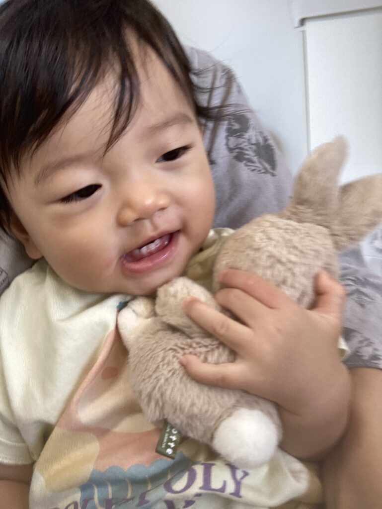 ご持参いただいた、大事なぬいぐるみで安心して、笑顔を見せてくれました