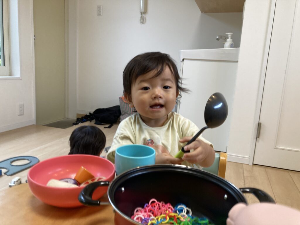 おままごとが楽しかったみたいで、イスに座ってじっくり遊んでいました♪
