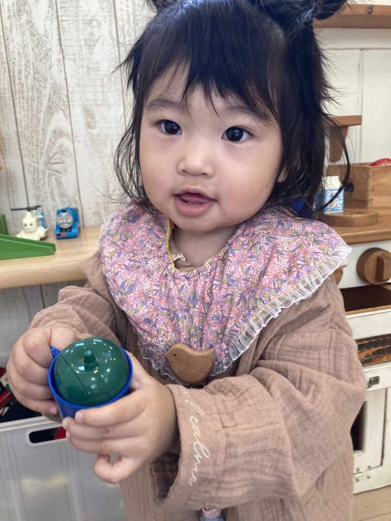 おままごとでは、コップに入れて「どうぞ」という感じで何度も持ってきてくれました